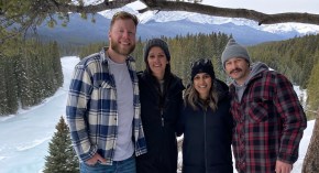 This is the story of my latest visit to Banff when two beautiful young couples from Syracuse, New York, and Edmonton, Alberta, calmly, amidst plenty of joking and laughter, helped me out at the Storm Mountain Lookout Point on the Bow Valley Parkway in Banff National Park.