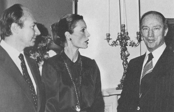 His Highness the Aga Khan and Begum Salima Aga Khan with Prime Minister Pierre Trudeau in Ottawa in 1978. Photo: Special Silver Jubilee Souvenir, 25 Years in Pictures, Islamic Publications, London.