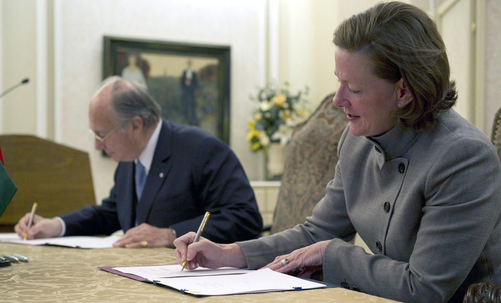 Premier Alison Redford and His Highness the Aga Khan signing the Agreement of Cooperation. Photograph by Chris Schwarz/Office of the Premier.