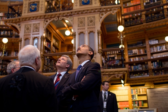 President Obama and Prime Minister Harper in the Parliament Library in Ottawa, Canada on Feb. 19, 2009. February 19, 2009. (Official White House Photo by Pete Souza)