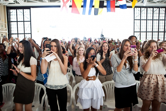 Audience members photograph during a Joining Forces event with First Lady Michelle Obama at the Jacksonville Naval Air Station in Jacksonville, Fla., April 12, 2012. (Official White House Photo by Lawrence Jackson)