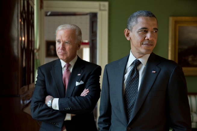 President Barack Obama stands with Vice President Joe Biden in the Green Room of the White House prior to delivering a statement on the economy in the East Room, Nov. 9, 2012. (Official White House Photo by Pete Souza)