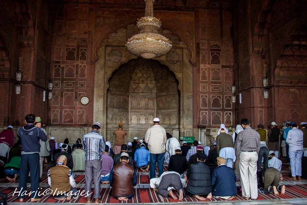 Worshipers at the Jama Masjid facing the Mehrab. Photo: Muslim Harji. Copyright.