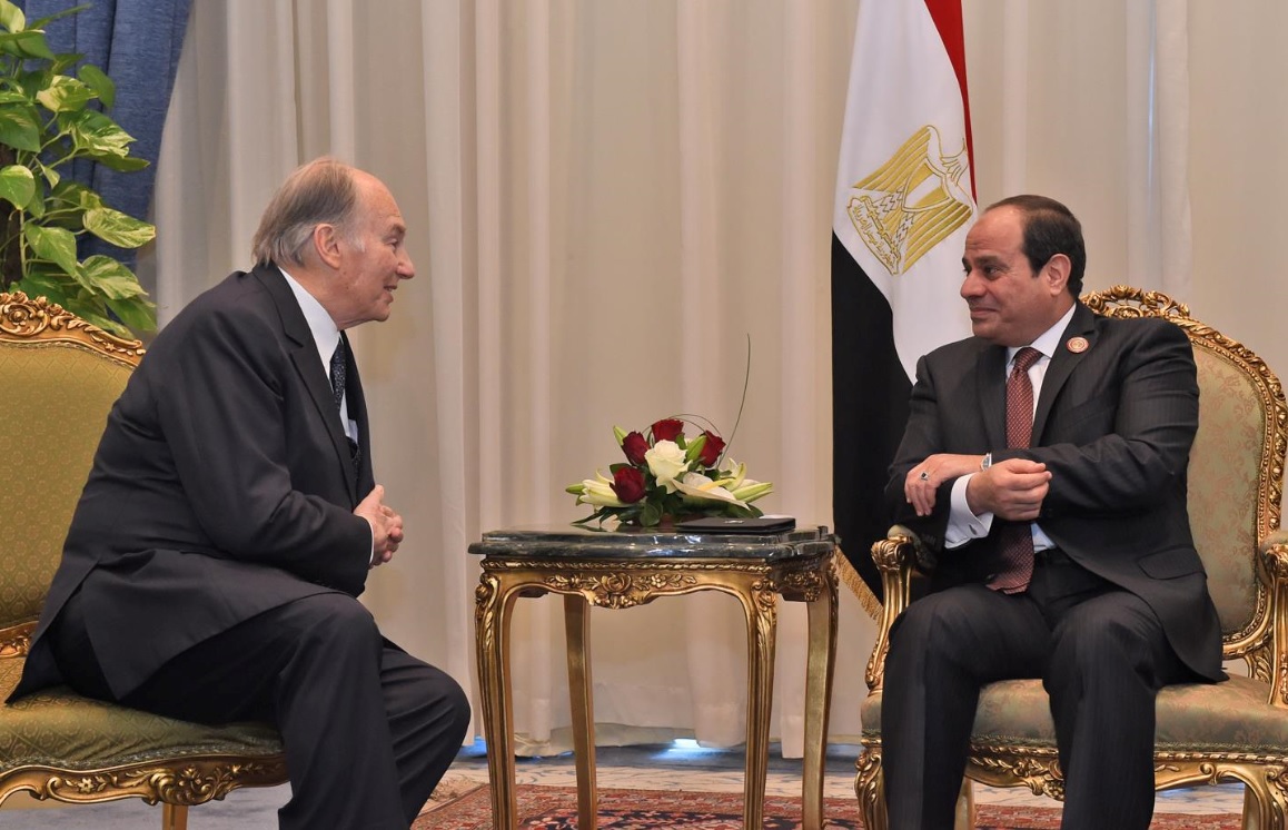 Mawlana Hazar Imam, His Highness the Aga Khan, pictured with Egypt’s President al-Sisi on February 20, 2016. Photo Credit: The Egyptian Presidency.