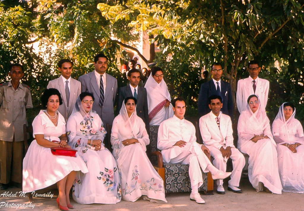 16. Incomplete caption (event/name of reciter and others recognizable in the group)). Mawlana Hazar Imam, His Highness the Aga Khan, visits Karachi, Pakistan in 1961. Photo: Abdul M. Ismaily. Copyright.