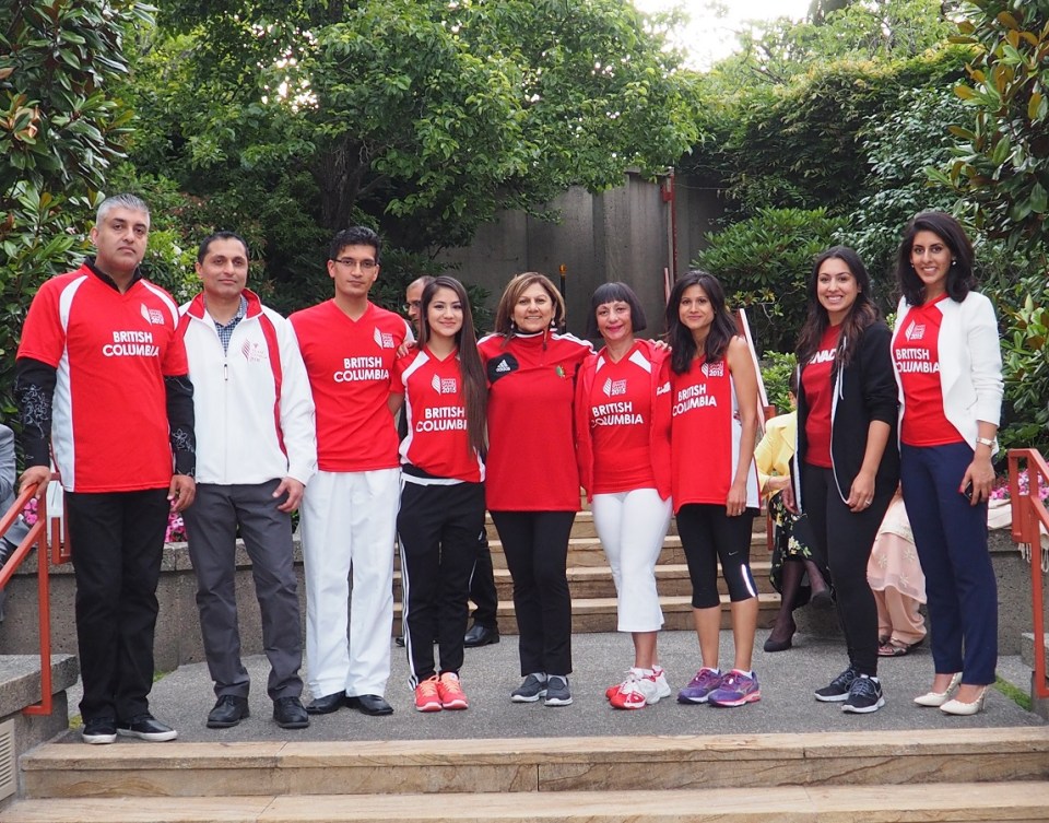 Approximately seventy nine Ismaili athletes from the Province of British Columbia (BC) will be representing Team Canada at the Ismaili Jubilee Games to be held in Dubai in July 2016 out of a Canadian contingency of around 500 athletes. Here, a small group of BC athletes get a picture taken before they join a short relay to welcome the lantern to the Ismaili Centre in Burnaby on June 17, 2016. Photo: Malik Merchant/Simerg. Copyright.