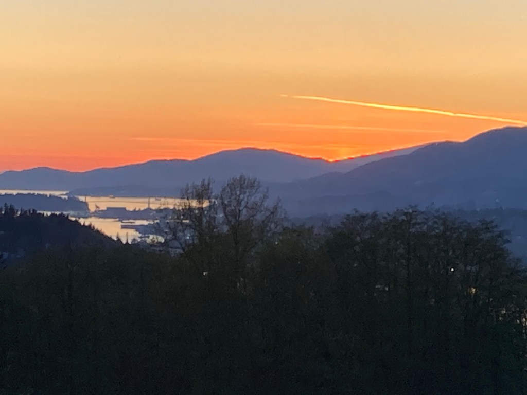 My evenings are mainly spent at the Burnaby Mountain Park, as it is quite close to me. Unless I am lucky, I have to make several rounds to get a parking spot as hundreds come to view the sunset. At this time, the sun sets between 8:10-8:25 PM — days will continue to get longer until June 21. The waters in the ocean glimmer with light from the setting sun. What a spectacular sight! One thing missing from my sight that I would see everyday at the Aga Khan Park in Toronto. The Ismaili Flag! Let’s see if we can plant one here and many other places!