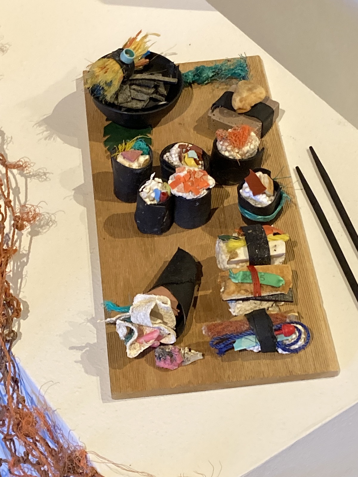 With resourcefulness and compassion, Alexandra connected the oceanic resources with the culinary creativity of Japanese culture by reconstructing the garbage into exquisitely formed sushi meals, edible in scale and served to order. His plates of sushi were evocative and striking.