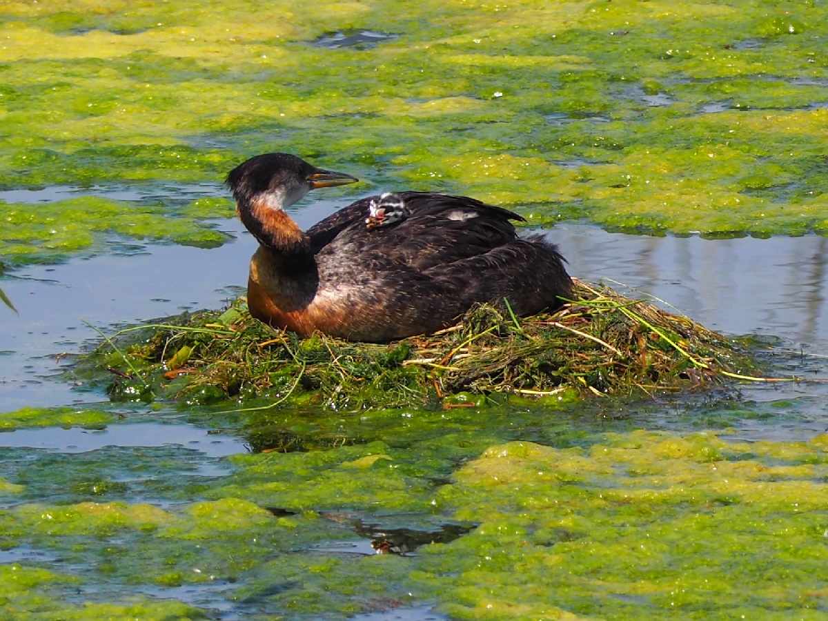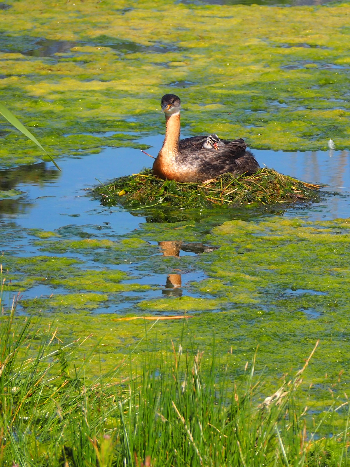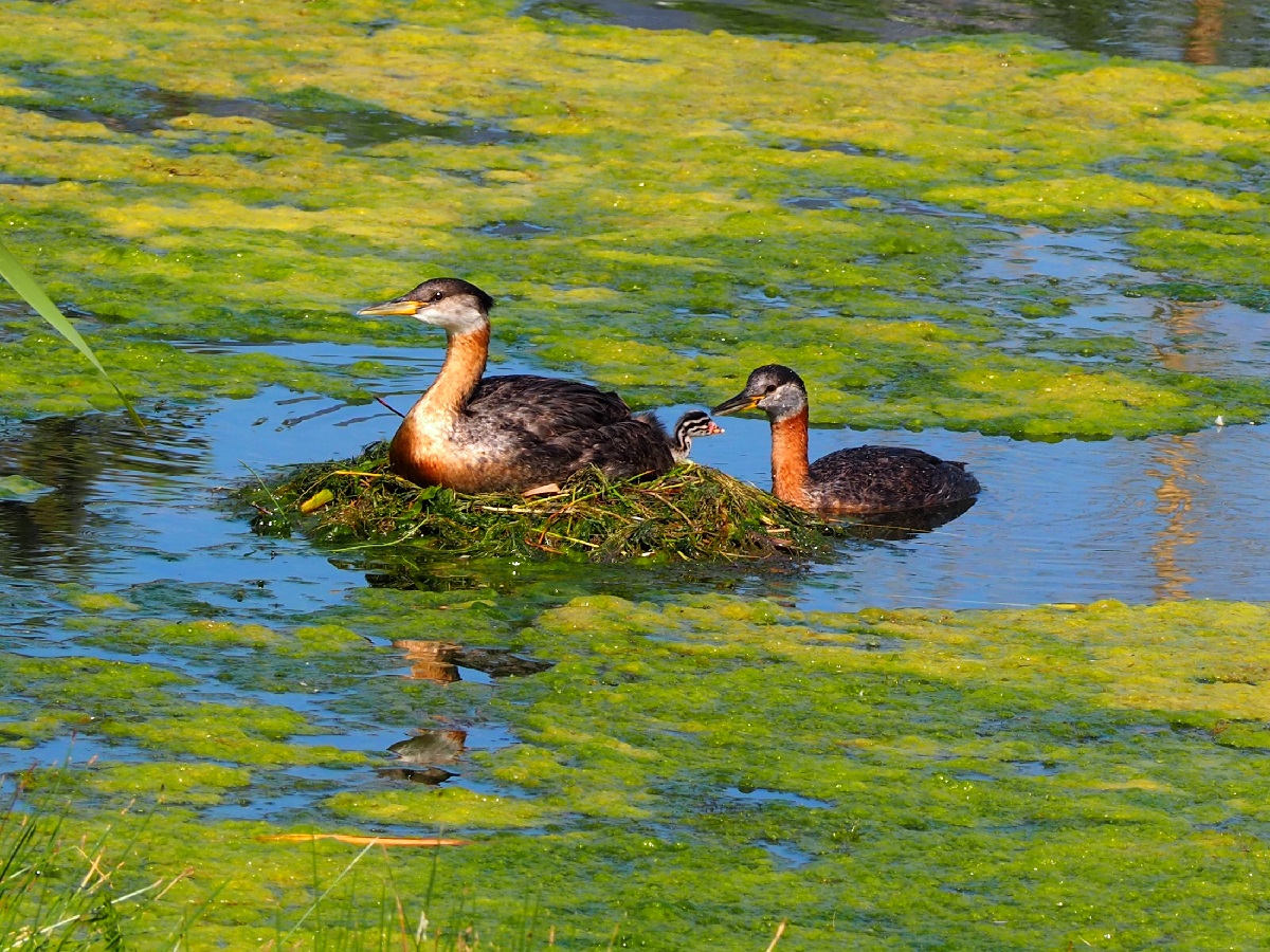 My Wonderful Photographic Experience as Red-Necked Grebes Nesting in a Calgary Pond Bring a Baby to the World