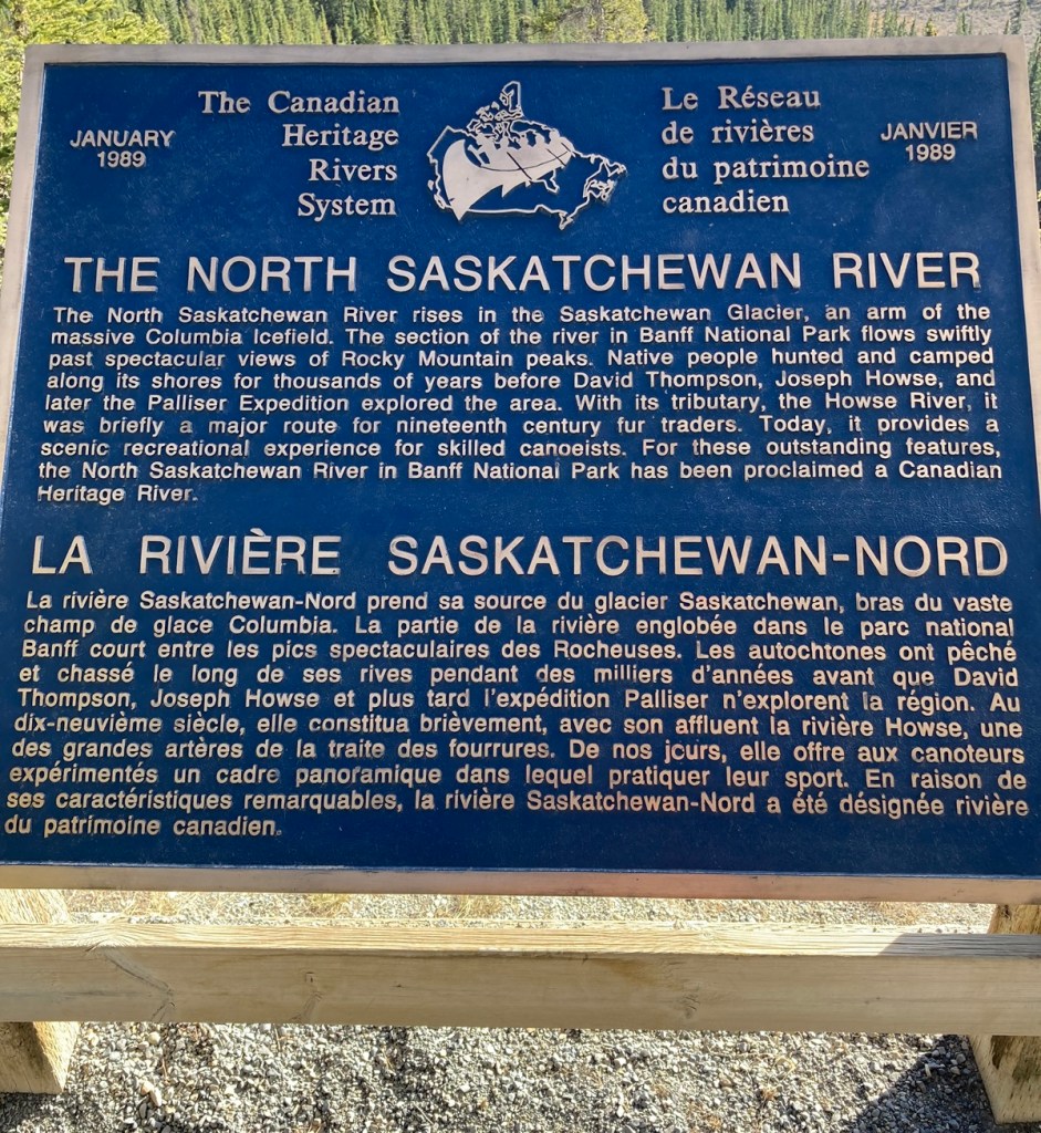 A view of the North Saskatchewan River near Saskatchewan Crossing; October 8, 2023. Photograph: Malik Merchant/Simerg Photos. Please see plaque, below