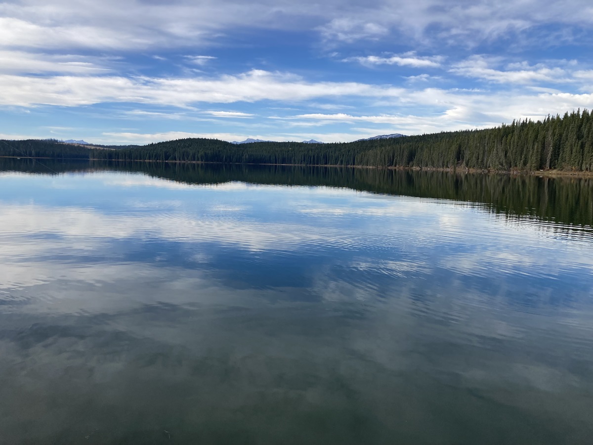 A small lake off Hwy 12, en route to Abraham Lake from Nordegg, a hamlet in Alberta; October 8, 2023. Photograph: Malik Merchant/Simerg Photos.