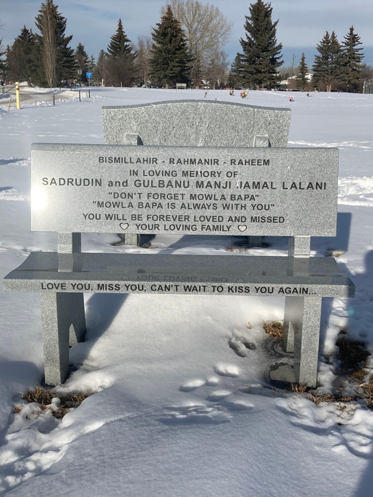 Memorial Bench Tributes to Deceased Ismaili Muslims Buried at Calgary’s Rocky View Garden of Peace Cemetery