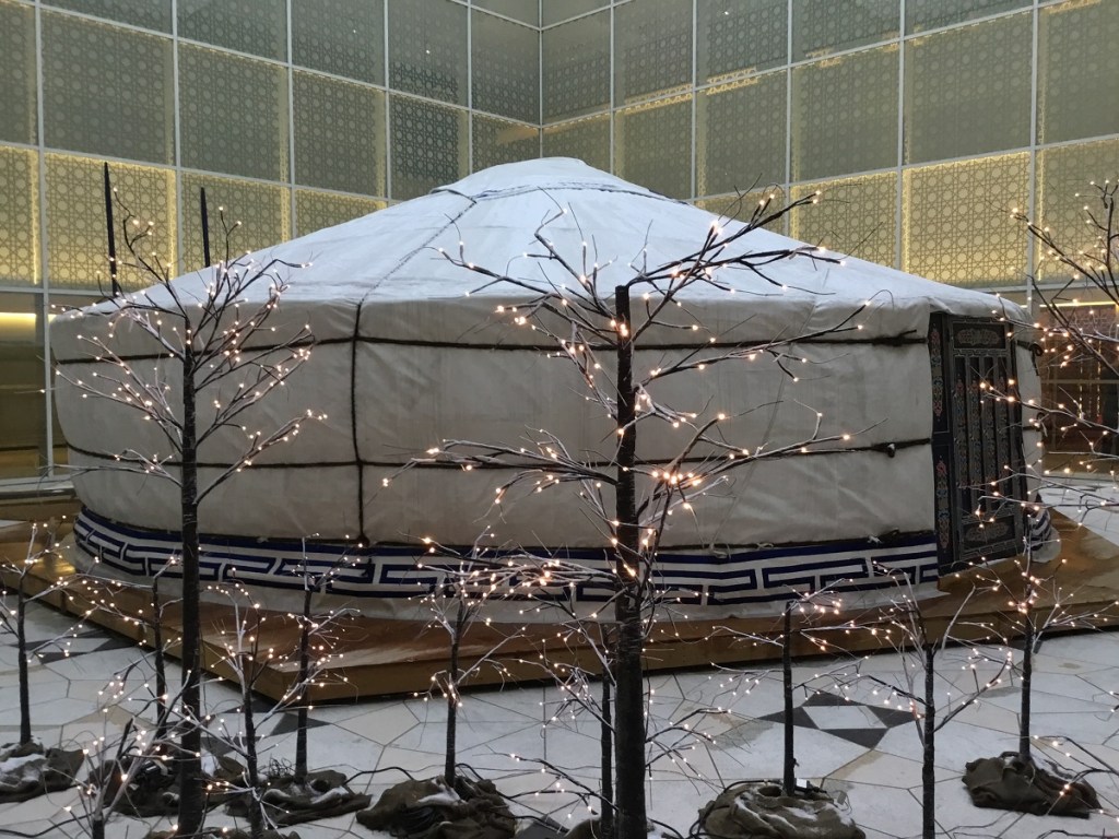 Yurt in the Aga Khan Museum’s courtyard, surrounded by festive lights; Sunday, December 30, 2018. Photo: Simergphotos/Malik Merchant.
