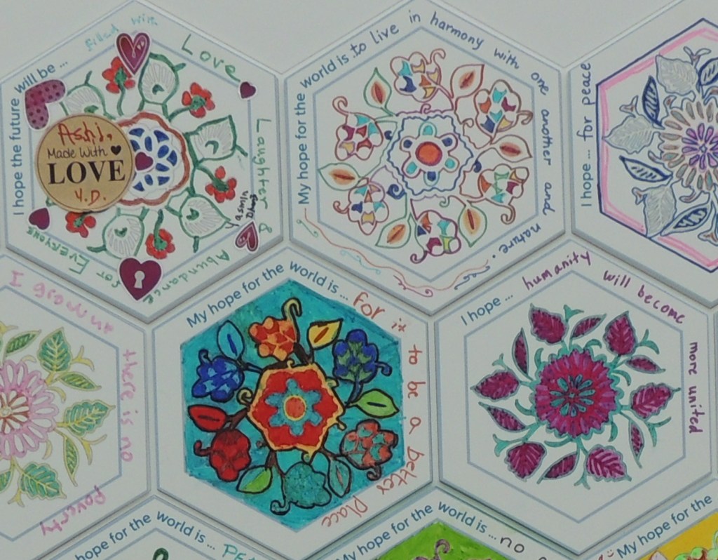 Before another COVID-19 shutdown, due to provincial regulations, the Aga Khan Museum allowed visitors to pen their heartfelt wishes on one of several beautiful pre-designed tiles available at the museum bookstore and post them onto a large panel prominently placed by the beautiful courtyard. The theme of the project was “Blossom Together Community Tile Wall.” Young and old alike shared messages of hope for 2021 and beyond: No deadly virus, cleaner water, happiness and freedom for all, unity, no wars, the vaccine for COVID-19, and more.