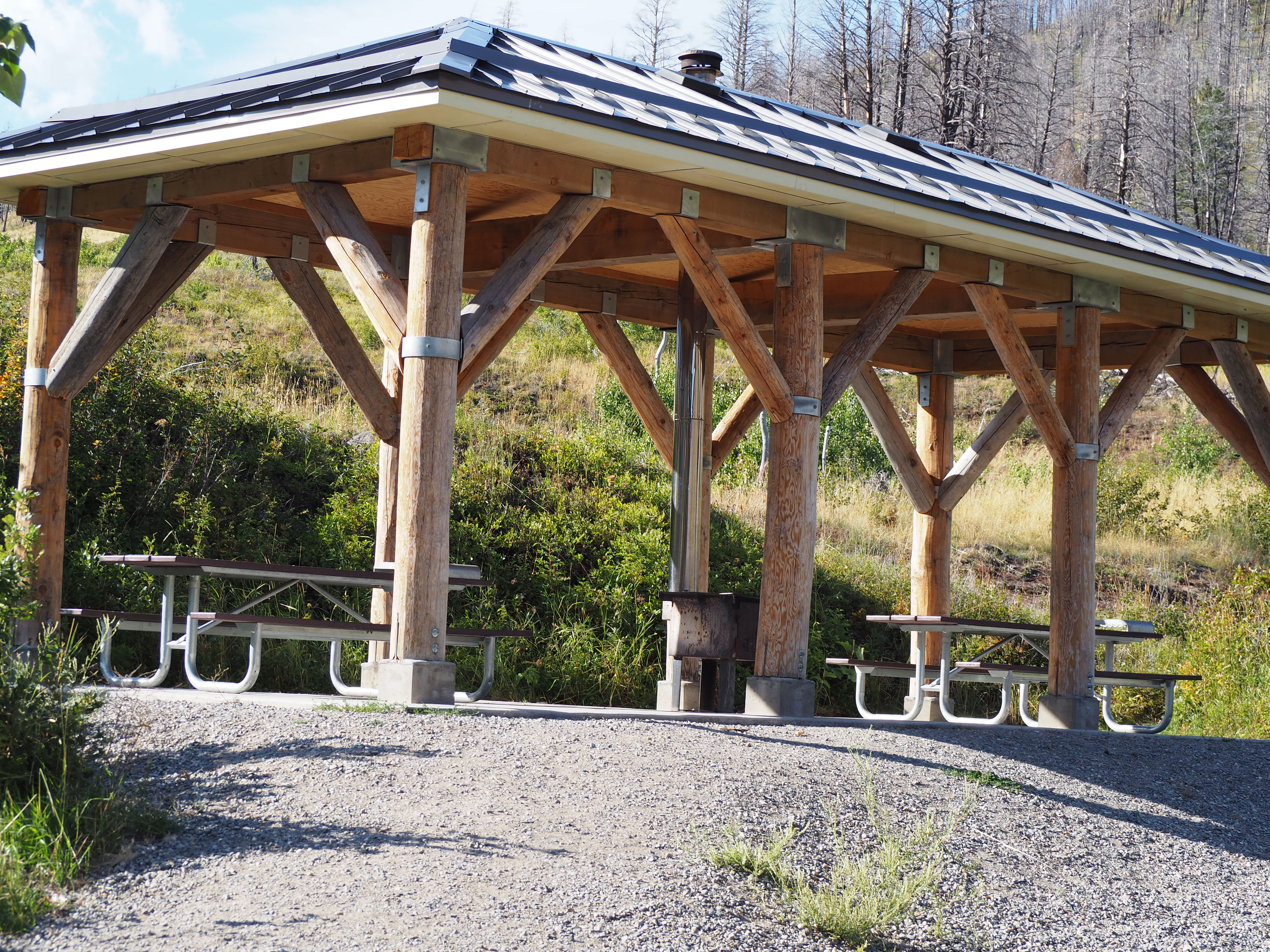 Picnic benches at the Lost Horse Day use area on the Red Rock Canyon Parkway, Waterton Lakes National Park, Alberta, Canada; September 3-6, 2024. Photograph: Malik Merchant/Simerg Photos.