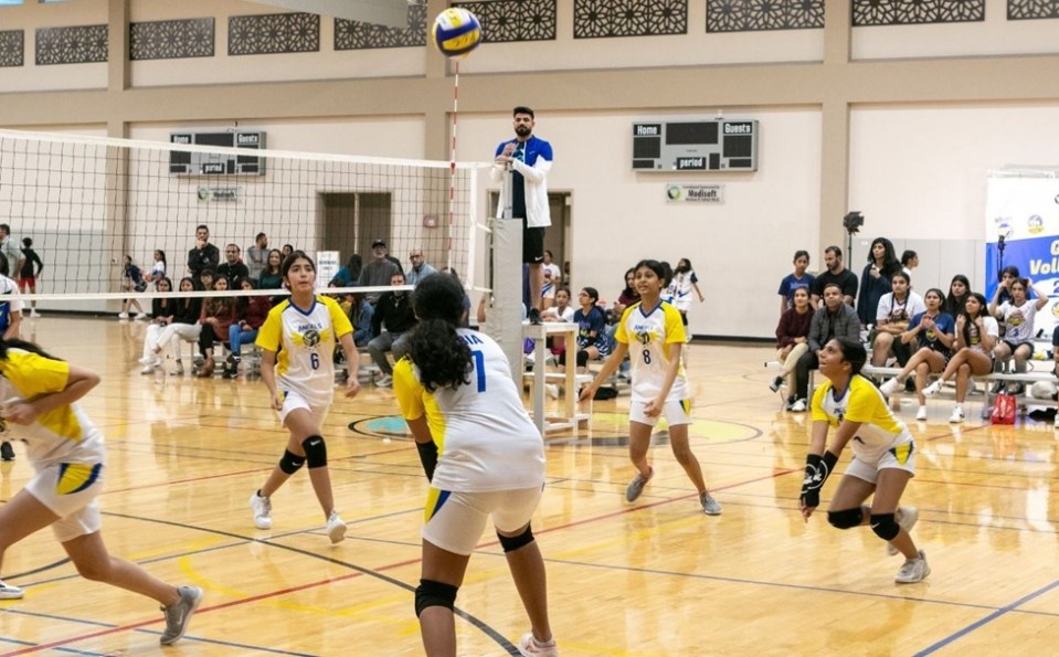 A youth group in a volleyball match at the Pioneer Community Center’s indoor sports arena. Photograph:Pioneer Community Center.